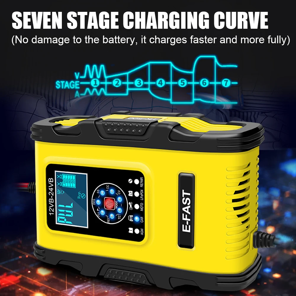 Мощное аккумуляторное зарядное устройство автомат EFAST 12V 12 Ампер 12 - 24V 6 A для любого типа аккумуляторов АКБ LiFePo4!