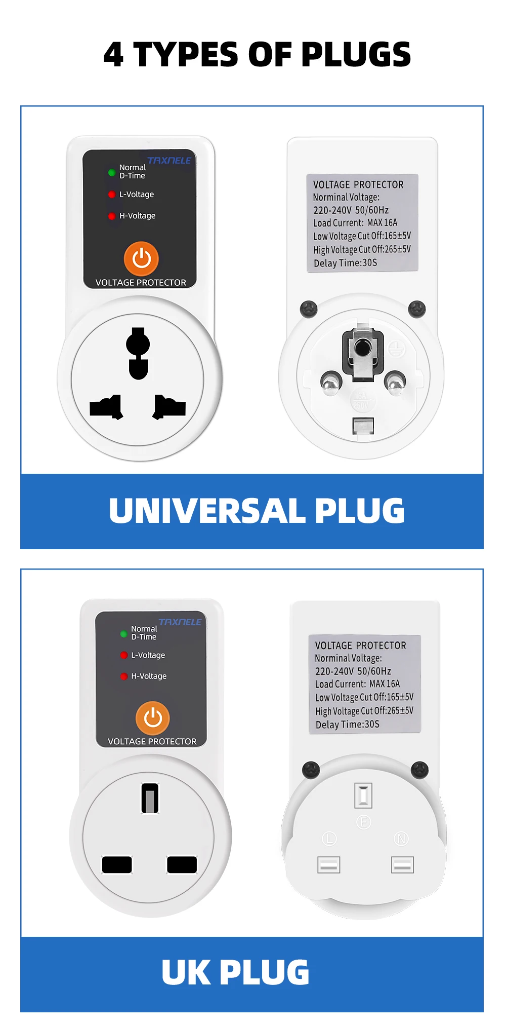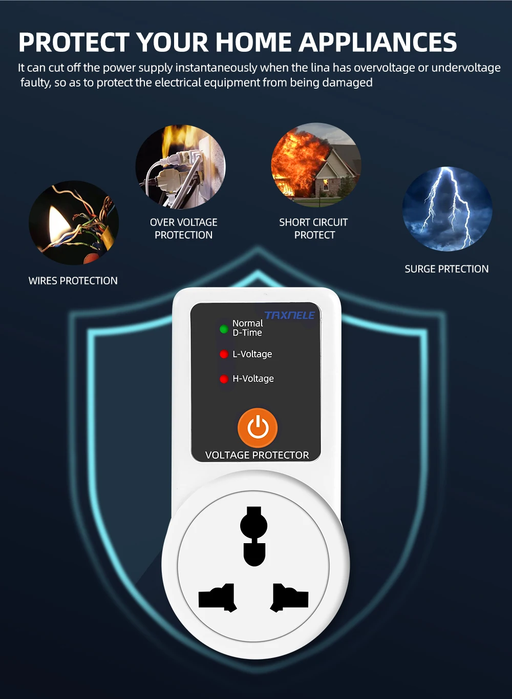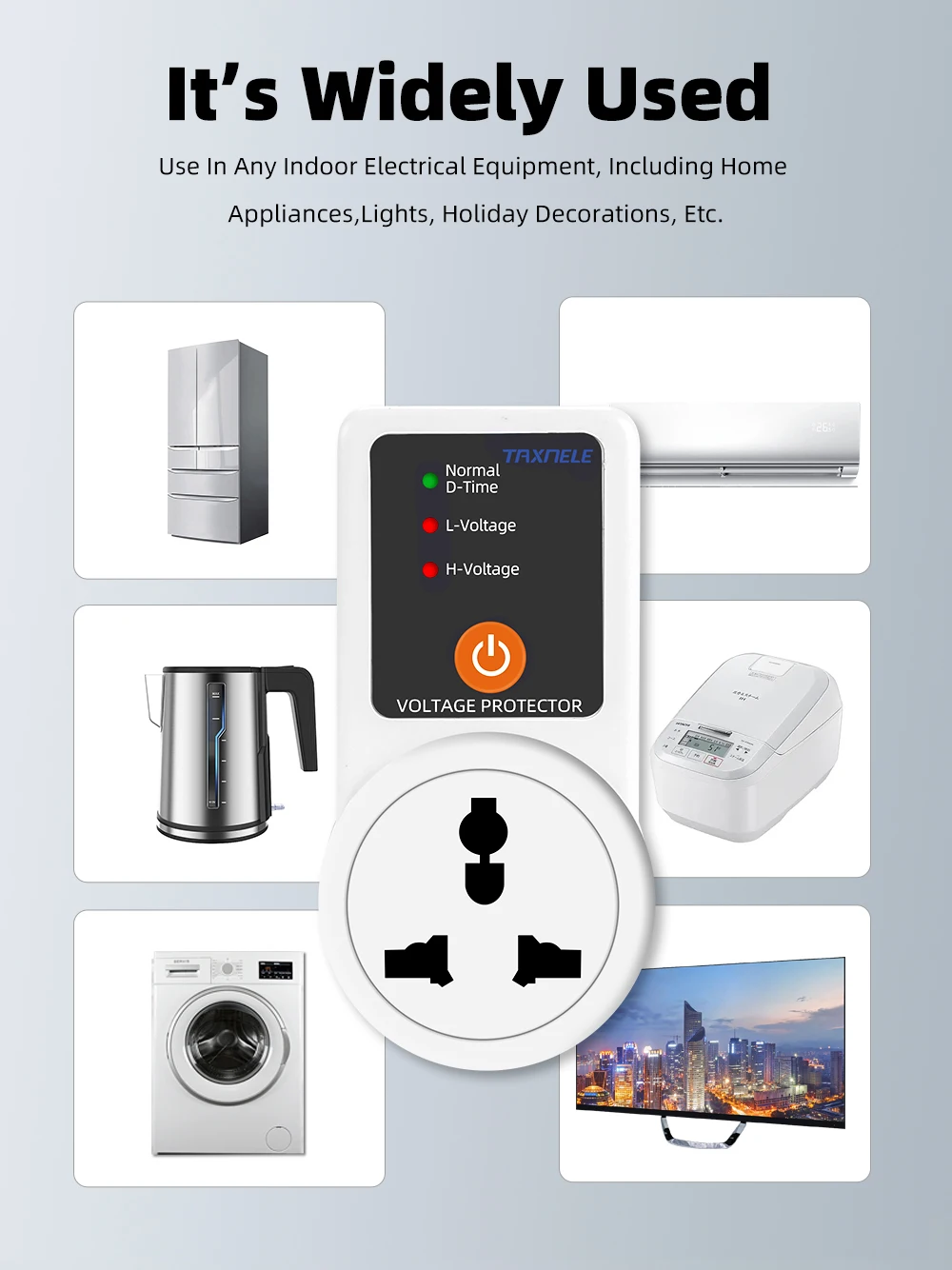 Многоразовая защита: автоматически защищает бытовую технику посредством защиты от перенапряжения, пониженного напряжения и перегрузки. И сильная защита от погодных условий, которая может предотвратить взрыв электрического короткого замыкания.