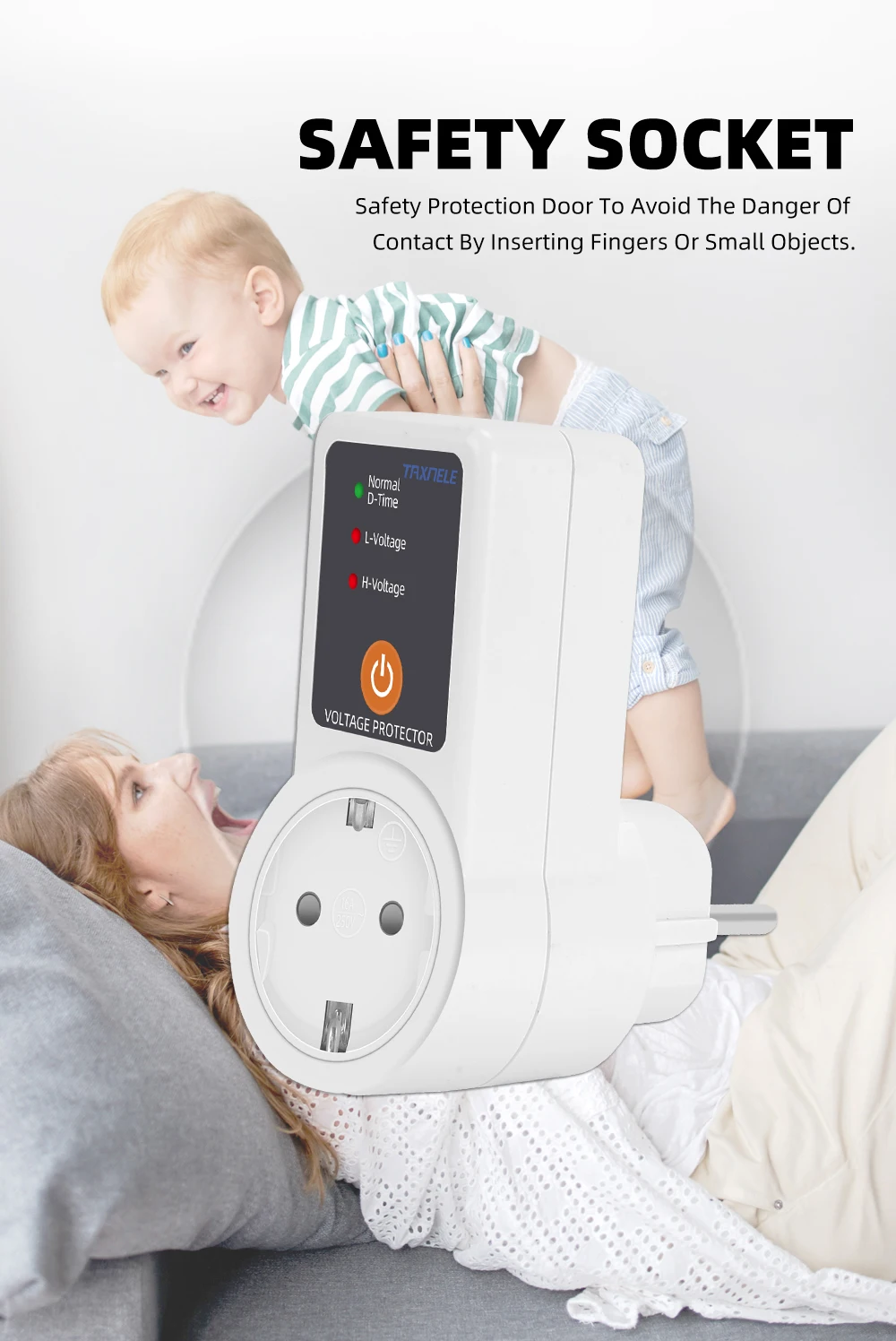 С несколькими защитами, задержкой времени и функцией автоматического отключения. Оснащенный функцией безопасности для детей, внутри розетки есть защитные шторки от неправильной вставки, чтобы предотвратить доступ детей и поражение электрическим током.