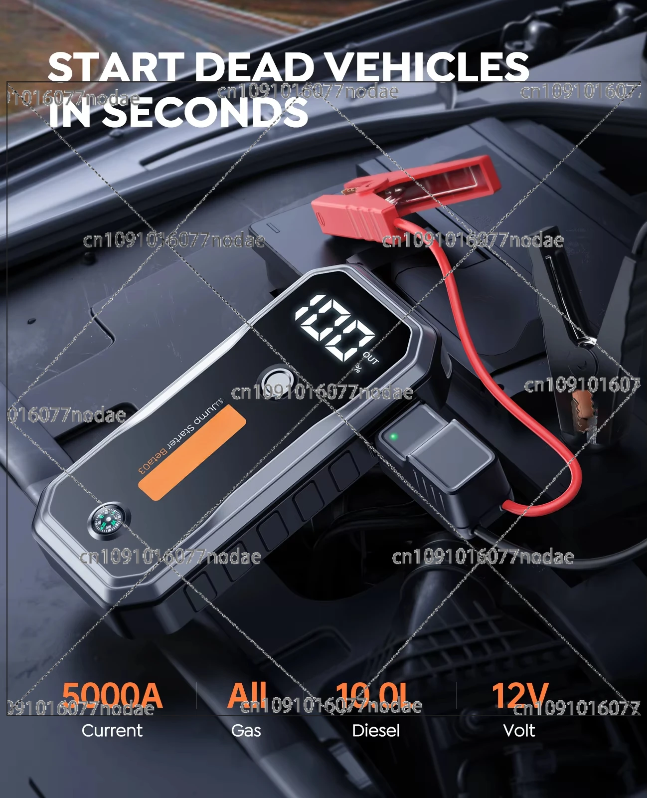 - Мощный пусковой ток 5000А. Благодаря высокому пусковому току 5000А это пусковое устройство может запустить даже большие автомобили и тяжелую технику. Мощность обеспечивает надежный запуск бензиновых и дизельных двигателей объемом до 10 литров.
