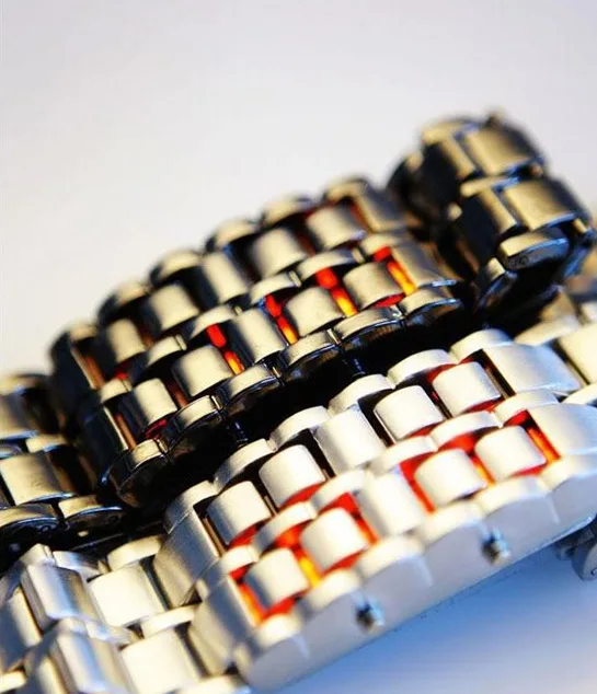 Світлодіодний цифровий годинник у нормальному стані має вигляд звичайного металевого браслета, але під час світлодіода він випромінюватиме темно-червоне світло, як
