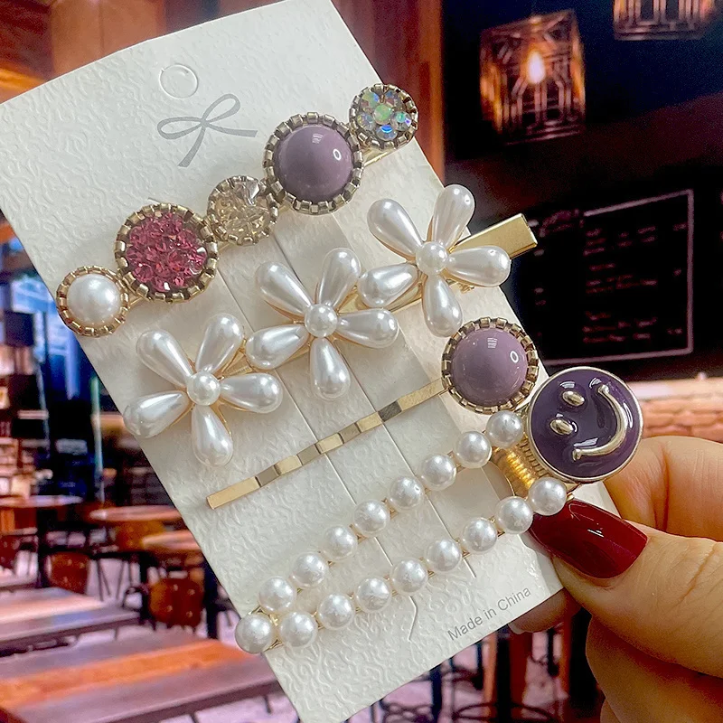 Fashion Handmade Pearls Hair Clips Pin For Women Geometric Flower Barrettes Headwear Girls Sweet Hairpins Hair Accessories