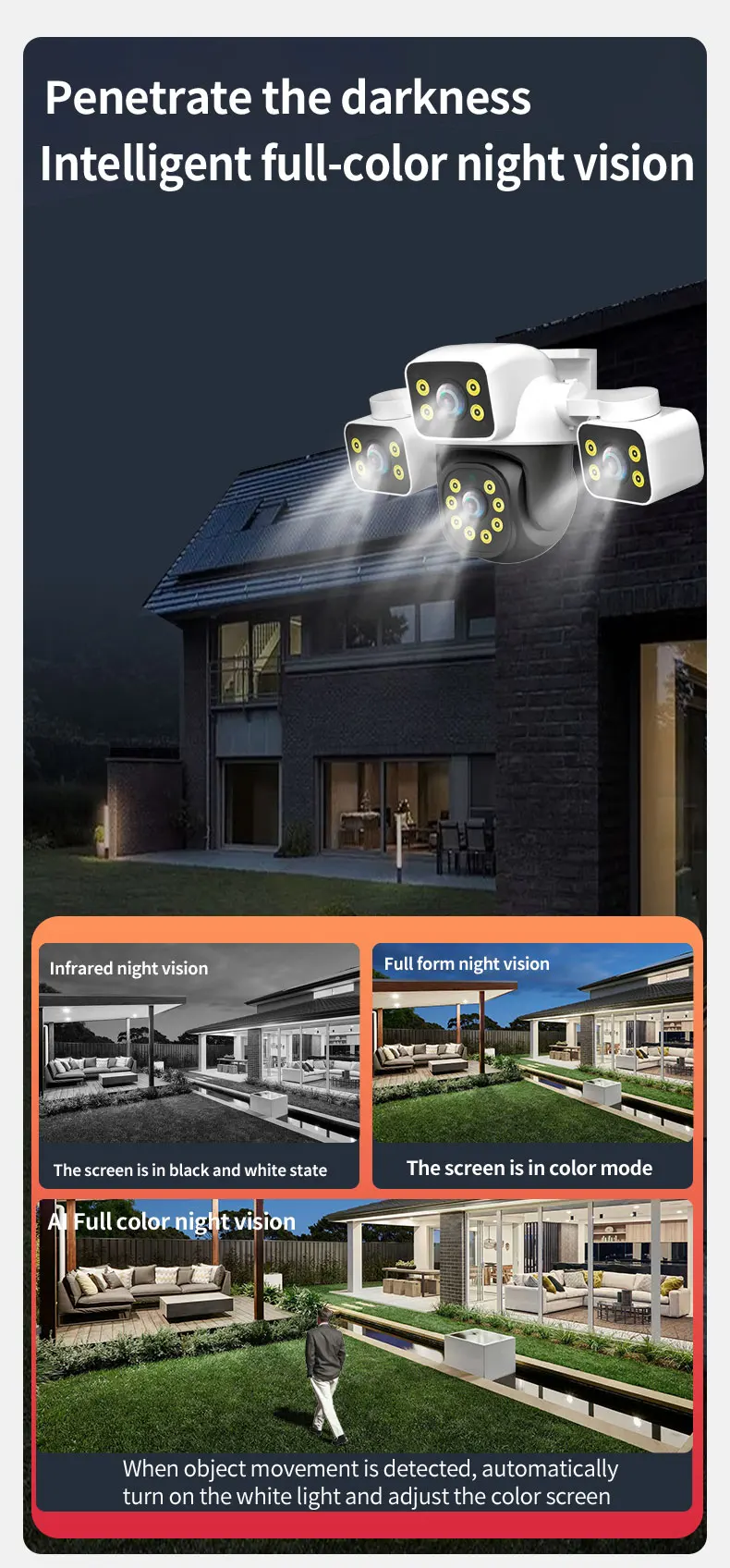 — є ефектний режим, повноколірний режим нічного бачення й інтелектуальне настроювання кольорового нічного бачення. Ці функції забезпечують чіткі та високочіткі зображення навіть у темряві ночі.