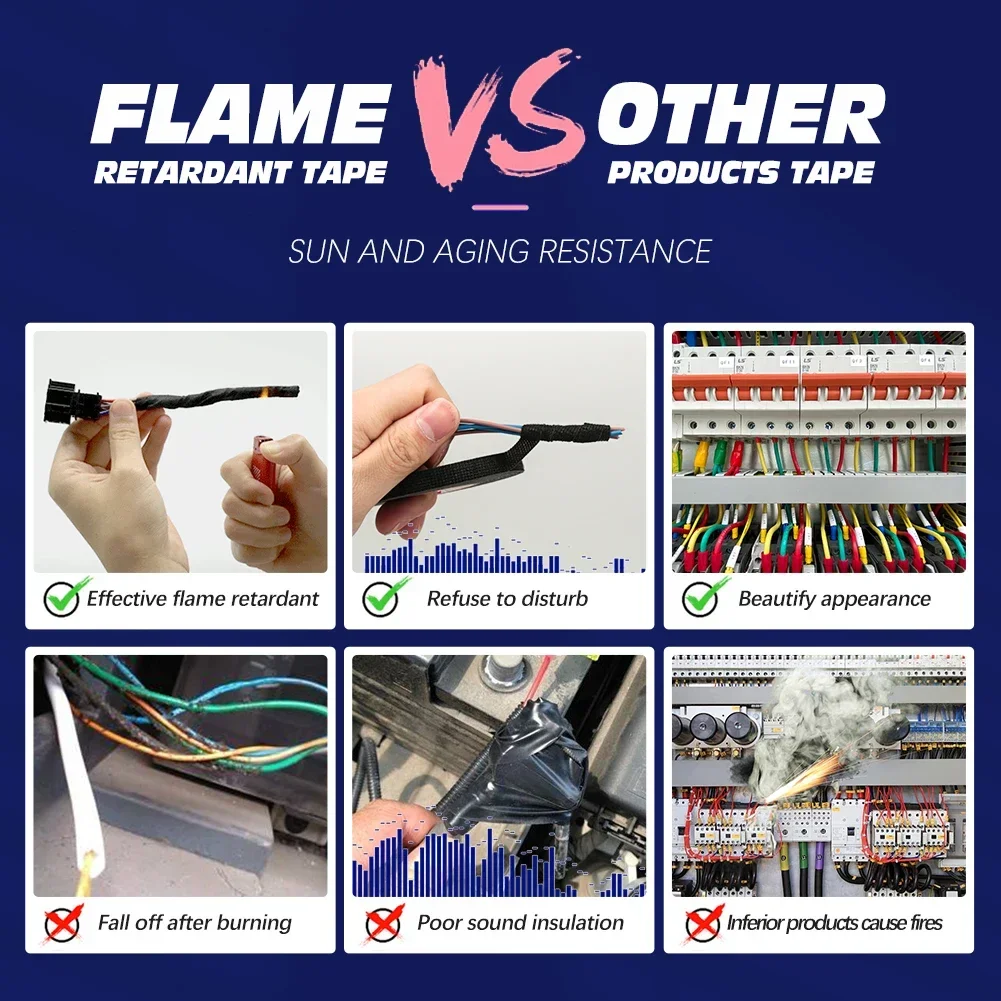 15 Meter Heat-Resistant Flame Retardant Tape Coroplast Adhesive Cloth Tape For Car Cable Harness Wiring Loom Protection Tools